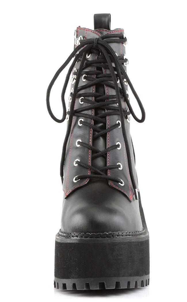 With red stitching and D Ring lace ups, these boots are a great addition to your everyday wardrobe. The side zipper makes for easy putting on and taking off.