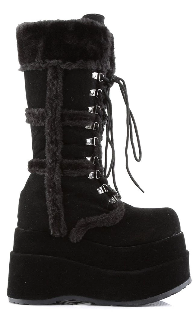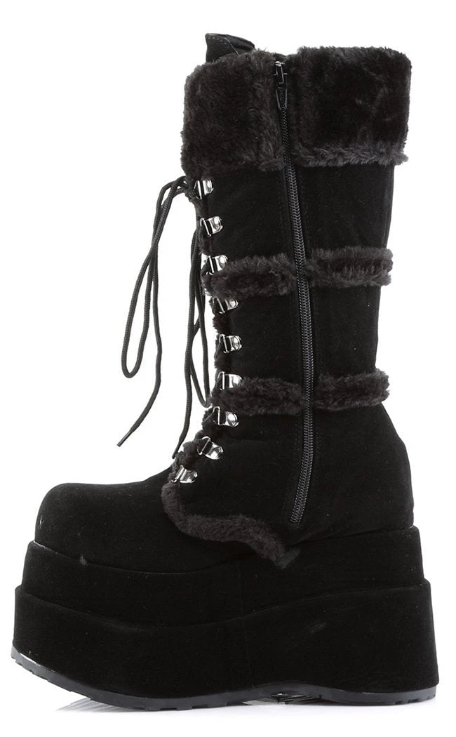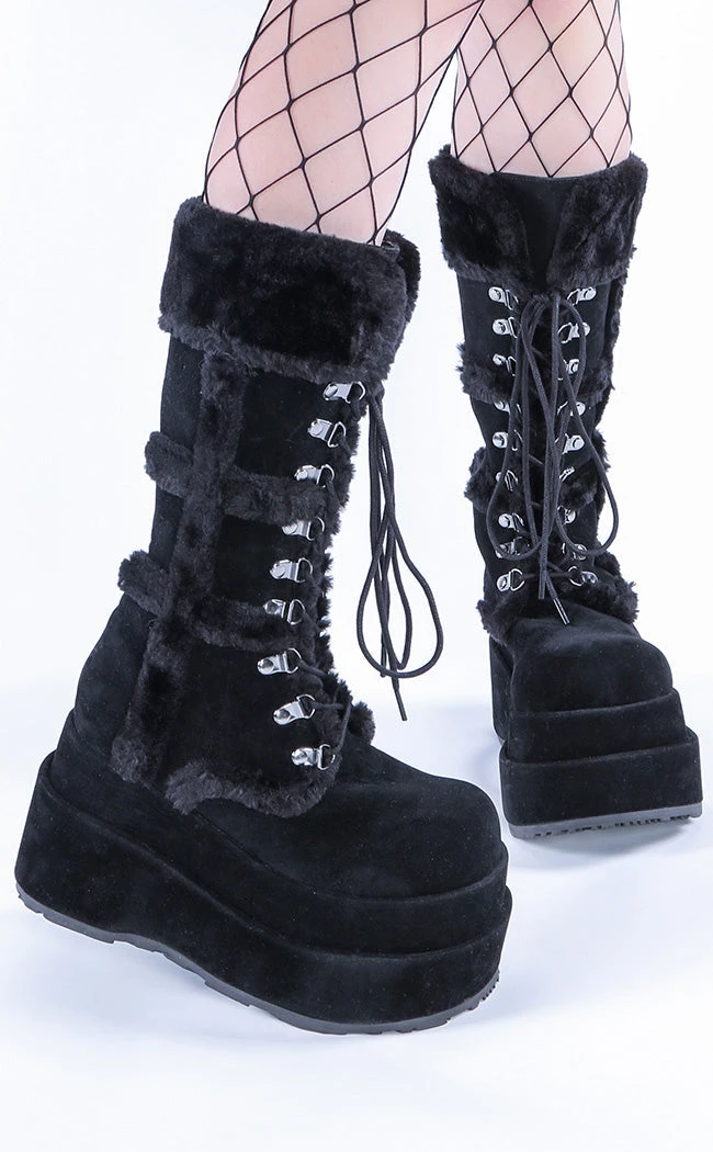 The fuzzy BEAR-202 knee highs are the perfect winter boots.Β The vegan suede andΒ faux fur will leave you feeling the warm fuzzies!Β Featuring a 4 1/2 inch stacked platform
