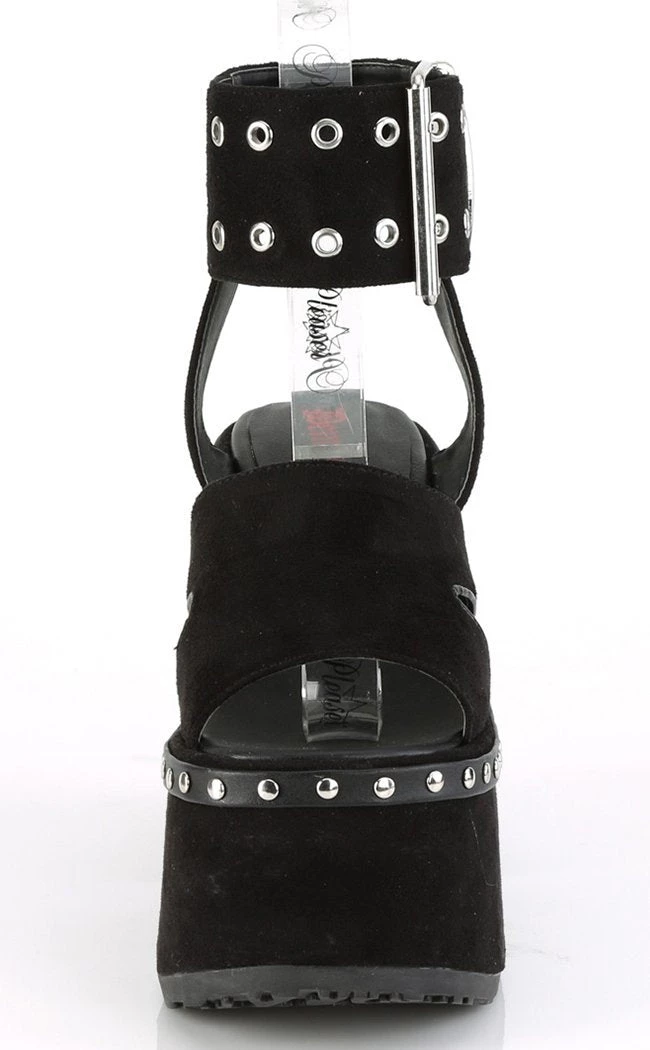 Budget π Demonia PACE-33 Black Vegan Leather Wedge π©΄ Sandals π