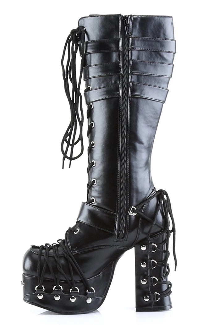 These boots are the ultimate way to let people know you’re a boss ass b*tch! Buckles and D ring lace-ups cover the shoes for a real bondage feel, but not to worry! A side zip makes for easy on/off.