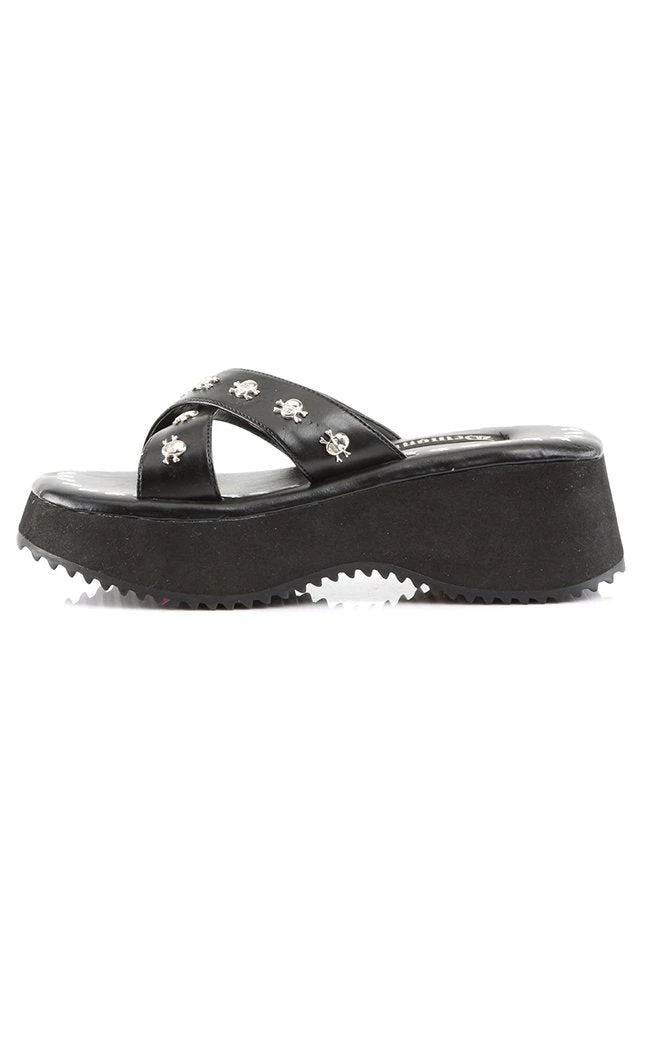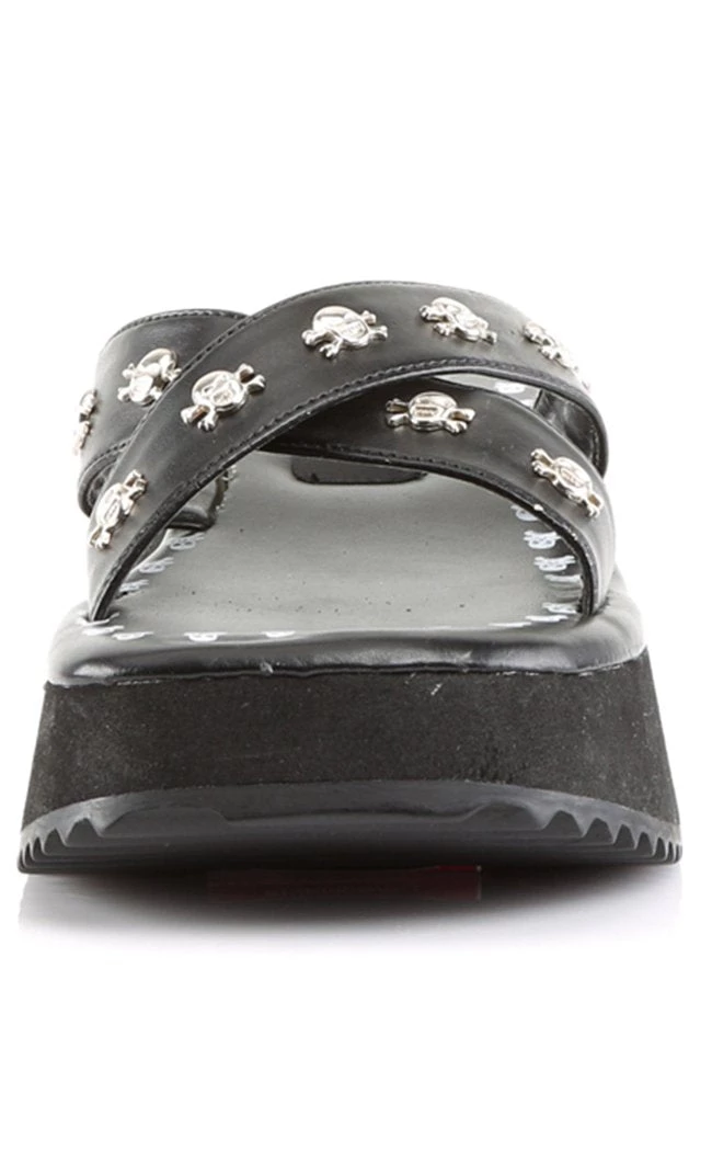 Has summer come around?Β Do you wanna stay Spookyβ’ without sweltering in boots?Β Then Demonia’s wide variety of sandals, things and slip ons have got you fam!Β Rest easy knowing that you can still stomp your way through the sand and seas!