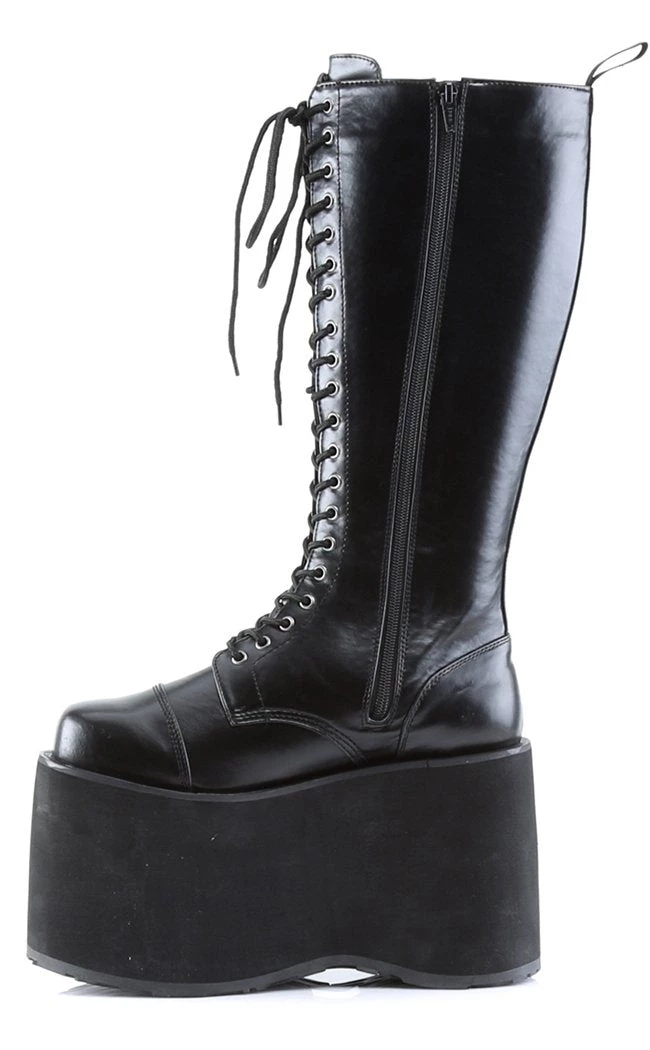 Damn gurl, how did you get all the way up there?Β¬β get yourself some MEGA height with these impressive lace-up boots!Β¬β With a handy inner zip, you can easily rise up and float down whenever you please.