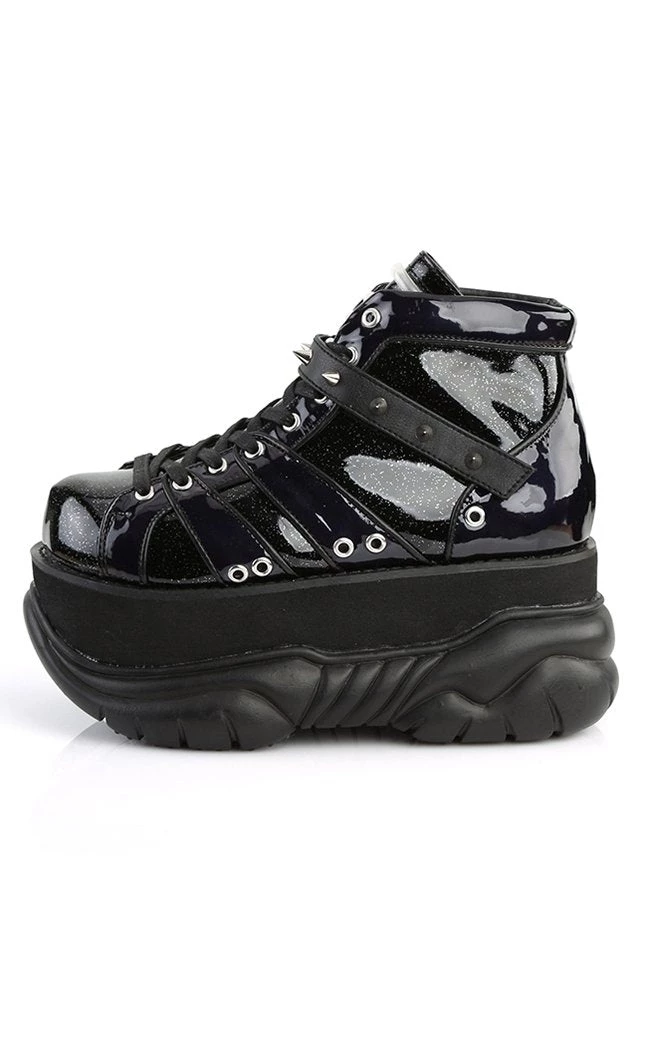 The ultimate cyber bootie! With glitter vinyl, a futuristic platform and spikes, the Neptunes will shoot your style power out of this world!