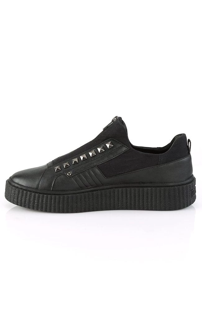 Half skate shoe, half wicked creeper. Demonia Sneekers are a comfy shoe with an edge.