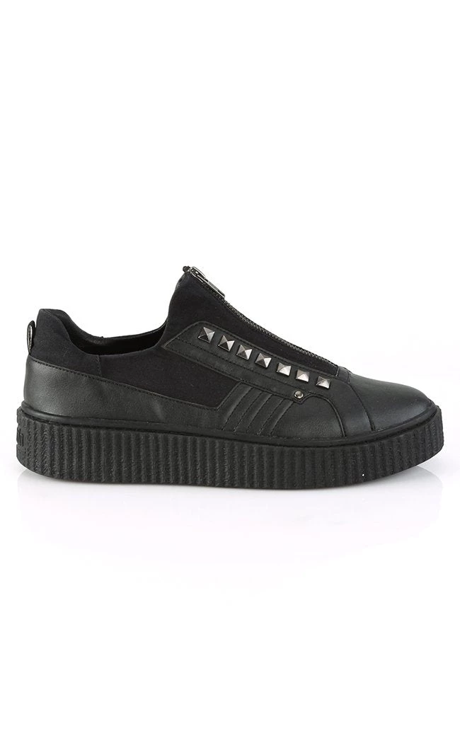 Half skate shoe, half wicked creeper. Demonia Sneekers are a comfy shoe with an edge.