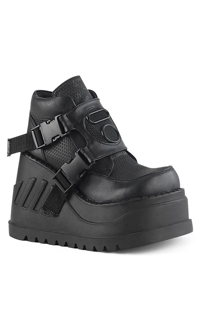 Outlet π Demonia STOMP-08 Black Vegan Leather Platform π Sneakers (Au Stock) π