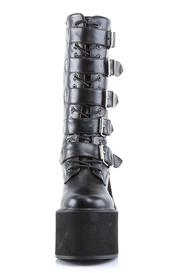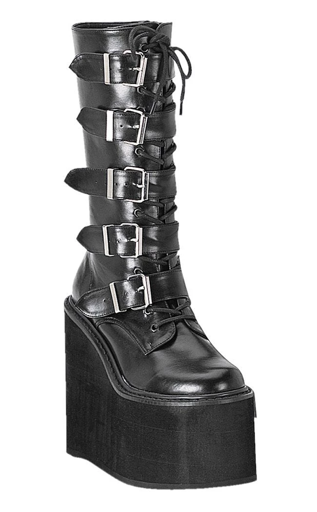 Swing your way into the club with this series of platform wedged boots and shoes, with buckles and straps and decals galore!