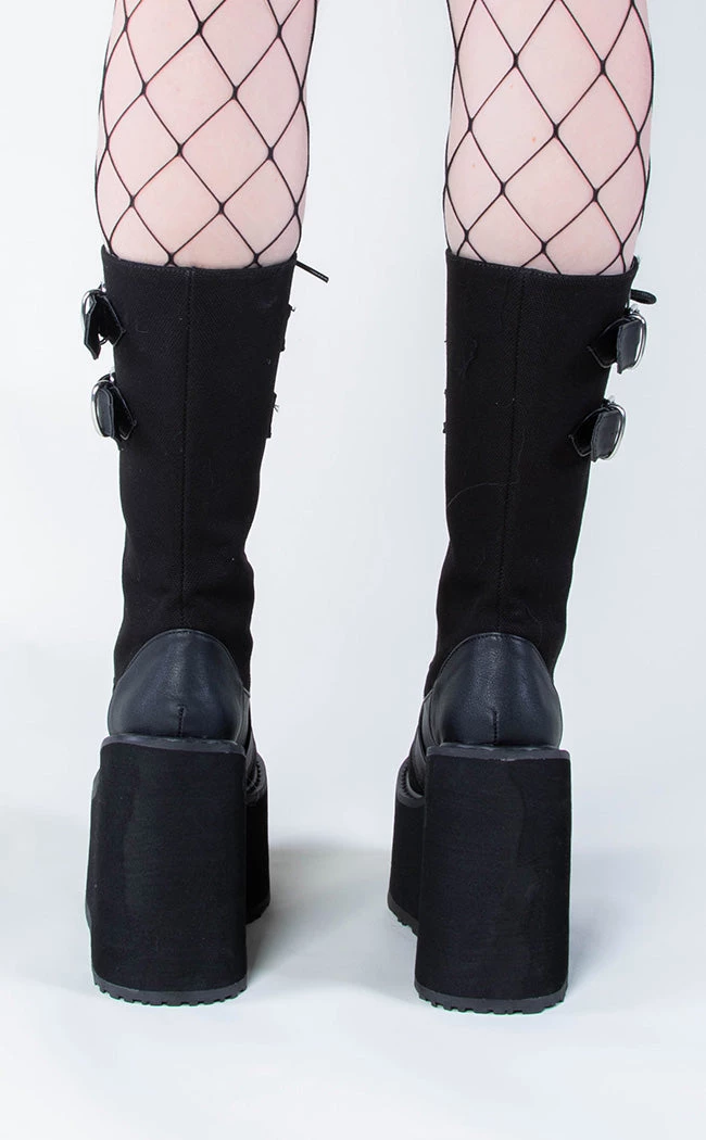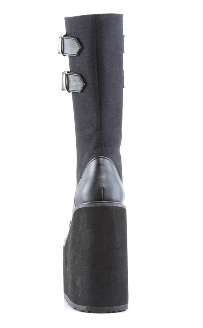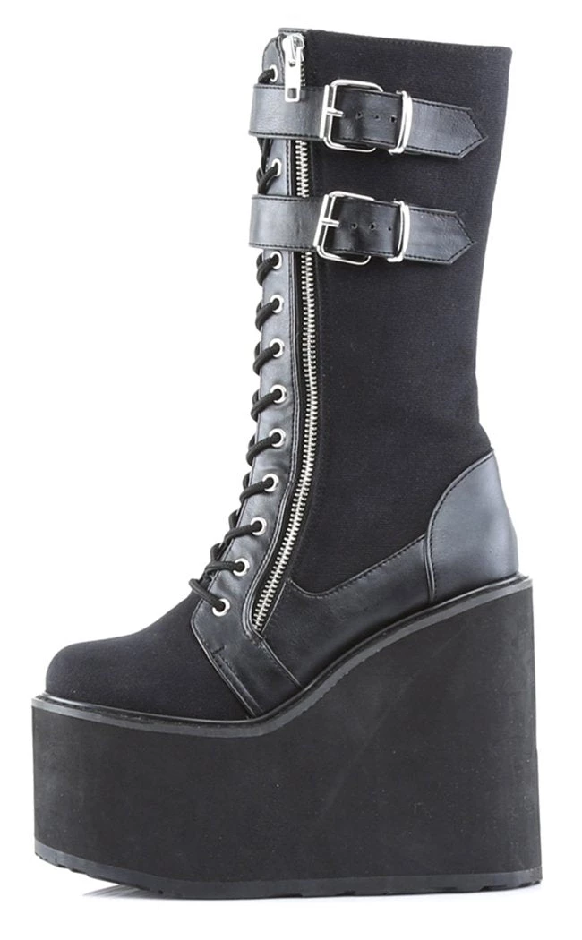 Swing your way into the club with this series of platform wedged boots and shoes, with buckles and straps and decals galore!