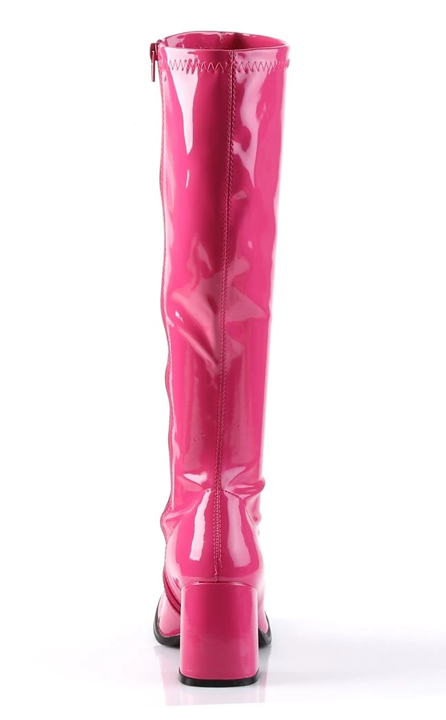 3″ Block Heel Gogo Boots, Hot Pink Stretch Pat, Side Zip
